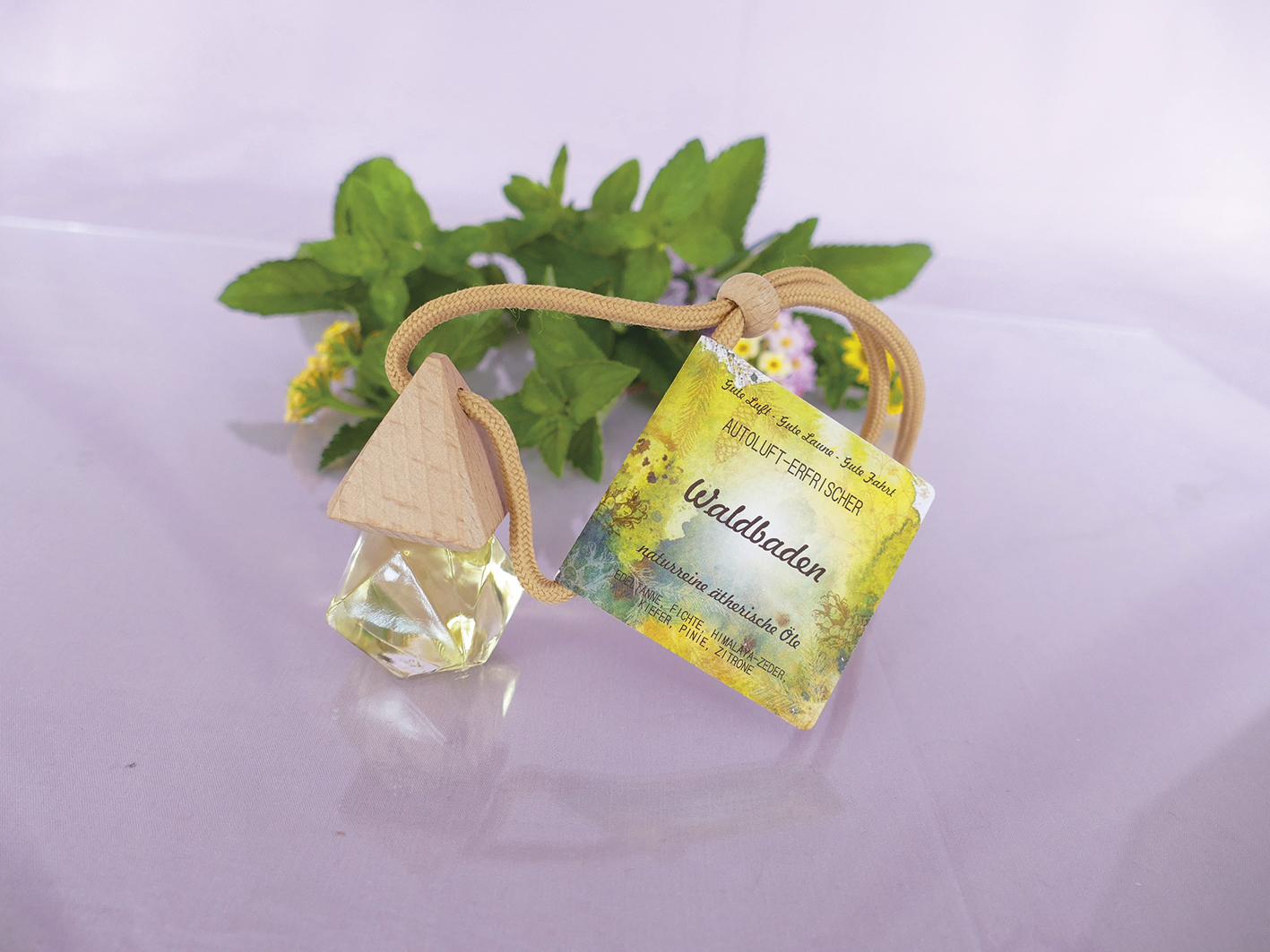 Verspielte Duftflakons aus Glas und Holz. Ein Blickfang für die Augen, Genuss und Freude für die Nase. Befüllt ausschließlich mit 100 % naturreinen ätherischen Ölen. Starker, frischer Duft für starke und frische Autofahrer!